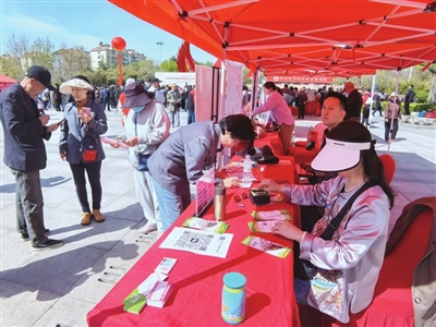 上午9时30分许,记者在李村文化公园广场上看到,雕塑东边的空地上,养老服务机构搭起了遮阳棚,向过往市民宣传招募养老服务人才和相关政策。