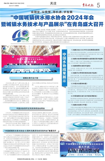 “会朋友、议良策、寻机遇、求发展”。4月15—21日,“中国城镇供水排水协会2024年会暨城镇水务技术与产品展示”(以下简称“年会”)在青岛市盛大召开。会议由住房和城乡建设部、山东省住房和城乡建设厅指导,中国城镇供水排水协会主办,山东省城镇供排水协会、青岛水务集团有限公司、山东金诺国际会展有限公司承办,各省级地方水协协办。