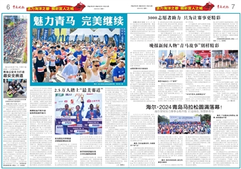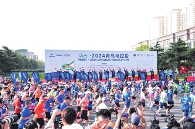 本报4月21日讯 21日上午,海尔·2024青岛马拉松激情开跑。赛道上,奔跑着来自全球各地约25000名跑者;赛道外,3000余名青年志愿者以满腔的热情、昂扬的风貌、专业的服务为比赛增添亮丽的青春色彩,助力2024青岛马拉松的成功举办。