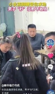 “告诉叔叔,今年多大了?”付腾飞一边和孩子聊天,一边轻轻捏住她的膝盖。“好了,你试试?”不到一分钟,孩子的膝盖恢复了正常。女孩的父亲一边道谢,一边要支付医药费,但付腾飞坚持不收,指了指墙上的几行大字:上面写着10岁以内幼童、75岁以上老人、环卫工人看病、腱鞘囊肿治疗,全免费。