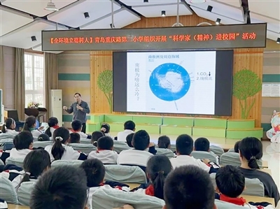 市生态环境局市北分局生态文明实践志愿服务团队走进青岛重庆路第二小学,开展“科普海洋知识,保护地球生态”主题宣讲活动,邀请中国海洋大学海洋生命学院史晓翀教授专业讲解海洋生物、海洋环境和大洋极地科考知识。史晓翀通过展示南极科考的各方面知识,让孩子们在了解美好南极同时,也激发了他们对科学探索的热情,树立了保护地球生态的环保意识。