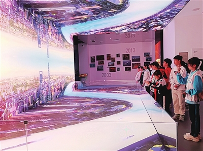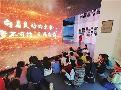 在学习馆中,声光电虚拟现实技术、标志性实物陈列、红色经典著作检索、海量数据展示等方式,生动展现了科学社会主义磅礴进程和马克思主义中国化辉煌成就。讲解员带领小记者们在沉浸式体验中,感悟中华五千年文明、近代发展史以及中国共产党百年伟大征程。