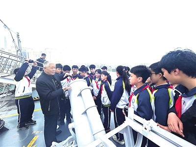 本报4月23日讯 为庆祝海军节,市军休服务中心联合中共崂山区委宣传部、崂山区教育和体育局、崂山区关工委,共同启动了全环境立德树人“强国复兴有我”主题活动——“红领巾致敬海军蓝”军休功臣进校园红色宣讲活动,以“走出去”“请进来”的形式,带领崂山区学子登上军舰进行实景式宣讲,组织军休干部走进崂山区学校与学生面对面沉浸式互动,通过军休干部的讲述,让学生们了解人民海军75年来的发展历程,坚定爱国爱军信念。