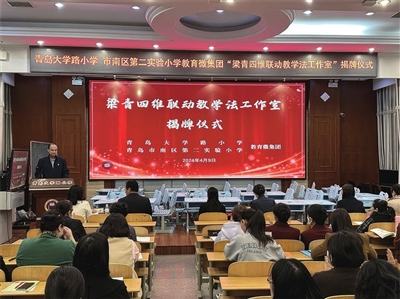本报4月24日讯 日前,青岛大学路小学与青岛市南区第二实验小学教育微集团举办了“梁青四维联动教学法工作室”的揭牌仪式,标志着集团校“微”教共享的序幕正式拉开。