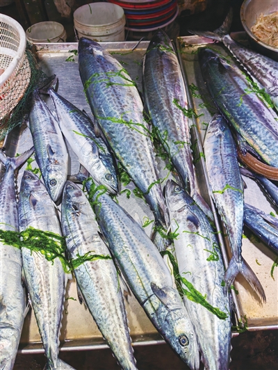 近几天的海鲜市场鲅鱼每斤20元至25元,这个时间这个价格,应该说是多年来的最低价。