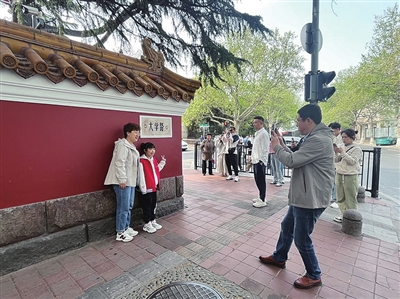4月30日9时刚过,记者在大学路看到,青岛市美术馆西南角已经聚拢了不少游客,只为和心心念念的网红墙拍一张合影,有序排起的长队提前预热了五一假期的火爆气氛。为迎接游客热潮,市南区多个区域做了充足准备。