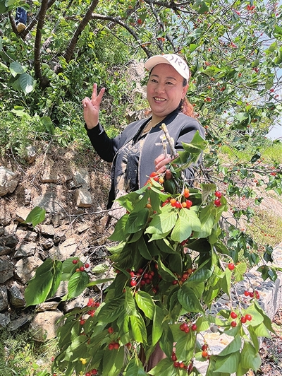 沿着山路向上,采摘的市民络绎不绝。“花低价品尝到如此甜美的樱桃,很值。我们一家五口每年都来这里摘樱桃,已经成为家庭的定期活动了。”正在摘樱桃的张秀娥说。