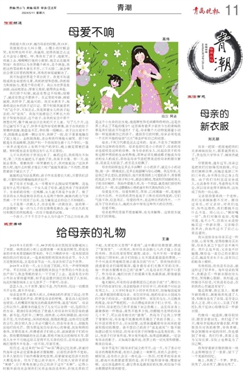 毫无疑问,所有的母亲都期望自己的孩子成“才”,哪怕大字不识的农家妇女,也会鼓励孩子好好学习,将来做个对社会有用之人。上大学时身边不少同学来自农村,但每每说起家人,最多提到的都是母亲。有位同学说,他的母亲从小到成为四个孩子的母亲,一直都在地里劳作。家里卖花生、大豆换来的现金,母亲严格把控,一点点攒起来供孩子们上学用。我上大学时,母亲把自己的手表摘下来让我戴上。这是母亲身上最奢侈的一件物品,虽然不值多少钱,但跟随当老师的母亲几十年了,可以说有相当的“感情”。然而为了让我上学便于掌握时间,母亲毫不犹豫地将其戴在了我的手腕上。当时并没觉得有什么,后来回想,这里面蕴藏着母亲深深的爱意和殷切的期望。谁不想自己的孩子“成龙成凤”?能不能如愿以偿另当别论,但母亲对孩子的憧憬永远是美好的。所以,当孩子们学有所成,事业有所起色,如果追根溯源,一定会有母亲的影子。正如高尔基所说:世界上的一切光荣和骄傲,都来自母亲。