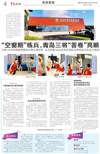 本次短训营时间不长,但三名青岛队球员都直呼收获颇丰。杨瀚森、赵嘉义表示能够再次跟随国家男篮集训非常开心,训练期间也很愉快,会将教练教授的内容运用到实战中,不断提升个人能力、继续进步。“乔帅的战术理念我已经牢记于心,希望可以灵活运用在后面的比赛中。”杨翰森说。第一次入选国家集训营的小将段昂君则这样说道:“通过这次短训营,我开阔了眼界,接触到了欧洲教练的体系和先进的理念。和这么多优秀的年轻球员一起训练,我看到了别人的优点,也发现了自身的不足和差距。集训结束后我会慢慢总结吸收,一步一个脚印向前走。”