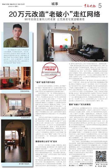 30岁的王舒正在网络上又叫阿正,他“爆改”的“老破小”因审美非常“正”,迅速在网络平台走红。过去,他和家人喜欢把市南区台北路1号的家称为老家,如今他更喜欢把这里叫做“新家”。