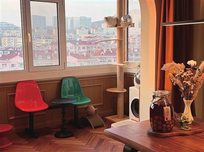 “原来餐厅位置是一个北朝向的客厅,我觉得不够亮堂,就把南朝向的主卧改造成了现在的客厅,形成了南北通透的布局。”王舒正说,此次改造的亮点在于对房屋结构的巧妙调整。为了提高空间利用率,他将房间数量从三室减少到两室,释放出更多空间,以用于其他区域的优化。他重新垒砌了一面墙,紧邻原先狭小的卫生间,在墙外新建洗手区,实现干湿分离,充分提升了空间的舒适度。除此以外,王舒正还在大门左手边打造了一处玄关,方便进出门时换鞋换衣服。“原来老房子的格局有点乱,存在一些不方便处。调整格局也是考虑到舒适性与便捷性。”同时,北阳台被精心设计成猫窝,为家中的宠物提供了舒适的休息空间。可以说,全新的动线设计赋予了老破小全新的“生命”,让这栋房子变得更适宜年轻人生活,更符合日常起居的习惯。