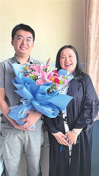 5月17日上午,记者在医院血液科病房内看见,高嵩的妻子李晓星向丈夫献上了一束鲜花。“老公加油,你是最棒的。”面对妻子的鼓励,高嵩露出了笑脸。“女儿知道爸爸去救人,也觉得他是英雄。”李晓星表示,当知道丈夫要捐献造血干细胞时,她第一时间表示要全力支持:小学一年级时,李晓星的同桌因为罹患白血病,未能等到成功的配型,不幸去世。现在丈夫要去挽救他人的生命,她感觉非常骄傲。