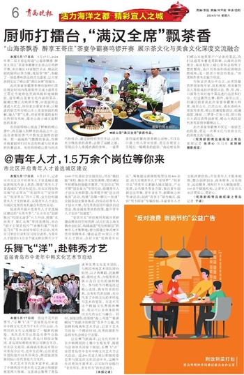 | 《青岛日报》(电子版)的一切内容(包括但不限于文字、图片、PDF、图表、标志、标识、商标、版面设计、专栏目录与名称、内容分类标准以及为读者提供的任何信息)仅供青岛日报社读者阅读、学习研究使用,未经青岛日报社及相关权利人书面授权,任何单位及个人不得将《青岛日报》(电子版)所登载、发布的内容用于商业性目的,包括但不限于转载、复制、发行、制作光盘、数据库、触摸展示等行为方式,或将之在非本站所属的服务器上作镜像。否则,青岛日报社将采取包括但不限于网上公示、向有关部门举报、诉讼等一切合法手段,追究侵权者的法律责任。 |