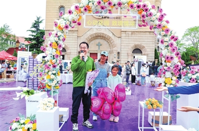 5月19日,“爱在青岛——大声说出你的爱”婚俗文化展演活动,在天主教堂海誓山盟广场浪漫上演。游客与市民一起,聆听关于爱情的歌、闯关“爱的游戏”、领取“定情大礼包”……在此定格“我的爱”,留下2024年“520”的专属美好。