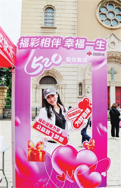 青岛市福彩中心也在天主教堂前打造了一处浪漫打卡墙,并现场赠送福彩大礼包。青岛晚报全媒体“爱摄青岛”团队专业摄影师,在打卡墙前为参与活动的有情人们提供了免费拍照服务,留下“520定制版”爱情回忆。同时,青岛福彩联合市南区婚姻登记处开展的“福彩相伴 幸福一生”活动也正式启动,自5月20日起,凡是在市南区婚姻登记处办理结婚登记的新人,均可获赠面值10元的即开型福利彩票一张,愿福彩的祝福陪伴新人们,为他们的婚姻之旅增添更多的幸福与喜悦。