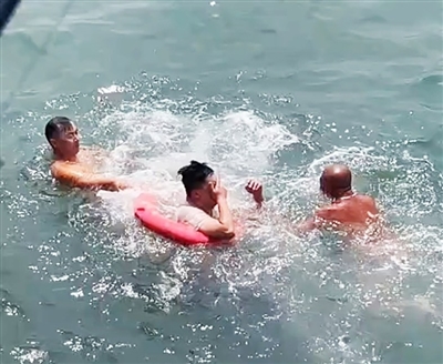 “我们组织了一个跳水队,当时正好在岸边晒太阳,都穿着泳裤。”第一个跳下水救人的宁健告诉记者,他听见有人在大喊“有人跳海了”的声音后,立刻朝声音传来的方向望去,随后一路狂奔100多米到事发地点,毫不犹豫地跳下了海。
