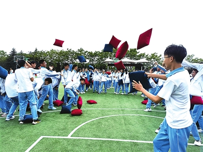本报5月24日讯 5月24日下午,青岛第二实验初中2021级全体初三学生聚集操场,开展心理减压活动。全校600余名初三学生在“超级有氧鼓”“枕头大战”“飞盘嘉年华”释压减负团建项目中,增强心理承受及应对能力,以更加积极的状态面对学习和生活。