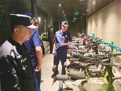 在城阳区的金色蓝庭、龙湖悠山郡等小区,青岛高新区消防救援大队和城阳区消防救援大队联合公安派出所等部门,重点对公共通道、楼梯间、安全出口、地下车库等公共区域内电动自行车停放、“飞线”充电等情况进行排查,要求立即拆除私拉乱接的电线,并提醒物业管理单位负责人要严格落实消防安全主体责任。