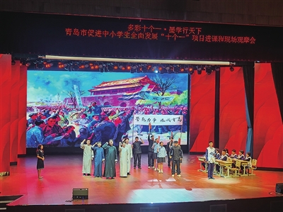 本报5月30日讯 体育课操练武术《精忠报国》、艺术课陶笛吹奏《青花瓷》、历史课研学《一战遗址博物馆》、实践课与机器人对弈……5月29日,青岛市促进中小学生全面发展“十个一”项目进课程观摩会在山东省轻工工程学校举行。各区市教体局分管领导及教师代表、市教育局直属学校分管干部代表通过沉浸式参观“‘墨子工坊’实践基地”“健康教育课程展示”“生活实践课程展示”“课堂教学展示”活动,纷纷为山东省轻工工程学校专业课教学体系点赞。
