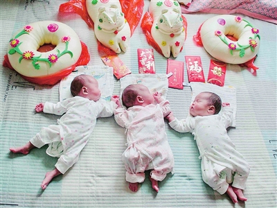 5月9日本报报道了城阳区人民医院诞生的龙凤三胞胎新闻,老大和老二先行出院,而老三则因早产仍留在医院新生儿监护室。他们的故事一直牵动着读者的心,6月2日恰逢龙凤三胞胎满月,记者有幸参加满月仪式,看到了兄妹三人已从“小不点”变为“小胖墩”……