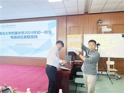 6月1日上午,市区最火爆的民办初中之一——青岛大学附属中学2024年初一新生电脑派位录取顺利举行。今年青大附中初一计划招收22个班,共1100人,与去年持平。在前期报名中,共有1528人报名,比去年增加91人。今年符合直升政策或优待政策直接录取的共792人,比去年增加126人;剩余的308个学位,在736名报名学生中,通过电脑派位形式录取。报录比达到2.39:1,高于去年的1.78:1。今年该校报名学生中,共有7对双胞胎选择捆绑派位,最终有3对双胞胎派出。