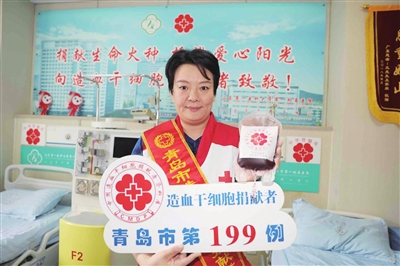 2018年4月,杨世坤在市北区采血车参加无偿献血时,了解到捐献造血干细胞能给急慢性白血病患者和再生障碍性贫血患者带去一份生存的希望,她毫不犹豫地填写了报名材料,成为一名造血干细胞捐献志愿者。今年5月15日,她接到市北区红十字会的电话,获悉自已与一名患者初步配型成功,立即答应捐献。