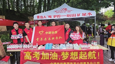 6月7日,中建铁投集团开发公司青岛分公司青年志愿服务队联合金家岭街道工青妇志愿服务队、云岭路社区居委会志愿者,共同开展“爱心送考、助力高考”志愿服务活动。