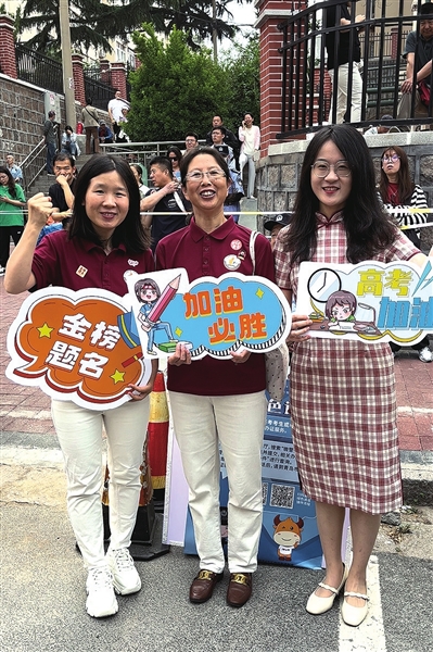 在送考“大军”中,青岛二中分校老师组成的送考队伍有些特别,这支队伍只有任瑛、毕桂玲、王英楠三名班主任组成,因为学生考点较为分散,老师们分别赶往不同考点。尽管人数少,但她们为自己“亲学生”加油打气的方式“甜度超标”——见到学生后,先从包里掏出一颗巧克力送到他们手中。“巧克力寓意巧克难题,吃一点甜食也能让孩子们心情放松下来,还可以避免发生低血糖的情况。”毕桂玲告诉记者,临考前几天,学校为学生们准备了丰富多彩的活动,比如擂响战鼓助威、上好“最后一课”、赠送一举高“粽”挂件等,希望通过这些活动让学生们感受到学校的关爱和陪伴。