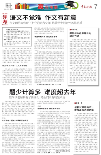 “感觉今年的作文题出得特别好,可以称之为任务驱动型,也就是针对一个社会热点或社会现象,让学生去深入地看待这个问题。”岛城一所民办高中的一位资深语文老师认为,这道作文题从表面上看并不难,但真正要写好或者说不停留在表面,就需要有一定的思维深度,平时要注重积累。