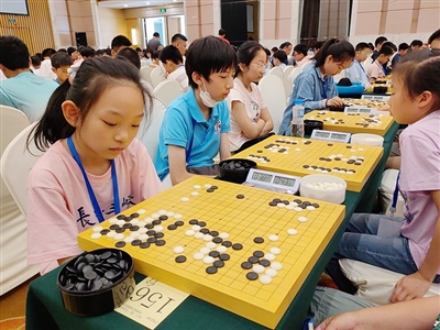 在4段组,记者看到,两位选手刚争完胜负,出门就握手亲密地聊了起来。来自青岛的这位棋手年过七旬,头发花白,已退休十多年,来自济南的小棋手今年刚刚6岁,还在上幼儿园。而在本次大赛中,类似这样的“祖孙对局”的情况并不少见,黄发垂髫怡然自乐。