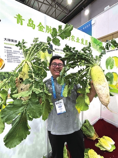 “这是升级版的新品种‘新王子’,它就是咱们常吃的韩餐萝卜泡菜的原材料,它的特点是腌制后不容易烂,如今已经在平度广泛种植,成熟后便在当地深加工成为萝卜泡菜。”青岛金脉(大绿)农业发展有限公司产品经理、销售总监吕凯良特意从地头带来了“新王子”萝卜,一个萝卜的重量可达5斤多。吕凯良介绍,公司位于城阳区,主要从事进口蔬菜种子业务,其中仅进口的白菜种子就有一百多种,能满足白菜一年四季的种植和市场需求。