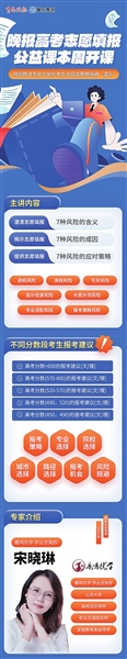 随着紧张的高考落幕,考生即将面临志愿填报新关口。为了帮助家长和考生轻松过关,青岛晚报特聘专家将开设主题为“志愿填报中的风险和应对策略”公益指导课,帮助制定报考策略,规避“雷区”。预约报名今日正式开始。