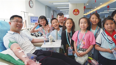 “在无偿献血健康科普基地,我不但了解了血液奥秘以及输血发展史等知识,还了解到一次献血200-400毫升不会影响正常的工作和生活,献血后储存于肝脾等脏器内的血液会参加到血液循环中去,也会促进新鲜血液再生。” 青岛同安路小学的郐清然经过学习,俨然已经成为“无偿献血推广小使者”。