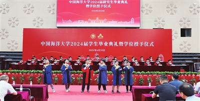 毕业典礼正式开始前,来自鱼山、浮山、崂山三大校区的23名博士和硕士毕业生表演了暖场节目,演唱了《篇章》《像你一样的朋友》《离别开出花》《最美的太阳》《我们都拥有海洋》5首歌曲,动人的旋律瞬间点燃了现场气氛,线上直播观礼人数也直线上升。