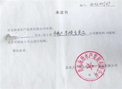 “签消费商协议的老人有十多位,青岛海康水产发展有限公司找不着人了,我们便去城阳找青岛月亮湾水产品公司兑现协议,‘回购’股份。一位王经理出面接待了我们,明确表示给不了钱,并拟了一份和解协议让我们签,内容包括给我们一个大礼包,视为履行‘回购’协议。其实所谓的大礼包就是用‘佣金’顶账,比如我们买1万元的海参,只支付7500即可,那2500算是佣金顶账。协议还约定我们不得再去门店维权,否则罚款10万元。”王女士告诉记者,他们当场拒绝了这份协议。