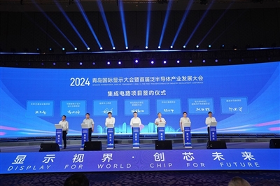 本报6月25日讯 25日,2024青岛国际显示大会暨首届泛半导体产业发展大会在青岛西海岸新区开幕。大会汇集权威学者、领军企业、产业投资者等各领域500余位嘉宾,聚焦新质生产力,就半导体显示产业共话发展新趋势,共瞻产业新前景,为新型显示产业的繁荣发展赋能。本次大会以“显示视界·创芯未来”为主题,通过主题演讲、圆桌对话、产业推介、创新案例展示等形式,分享产业变革最新洞察,为政府、产业、资本、企业搭建起一个集交流、合作于一体的综合性平台。
