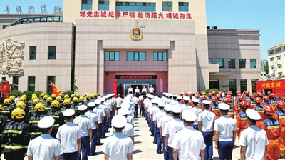 青岛市消防救援局局长姜大宁表示,将以挂牌为新起点,更好融入地方经济社会发展大局,更好担负改革发展重任,切实承担起“促一方发展、保一方平安”的政治责任,以保民平安、为民造福的实际行动,展现队伍的新气象、新担当、新作为。(观海新闻/青岛晚报/掌上青岛 记者 刘卓毅)