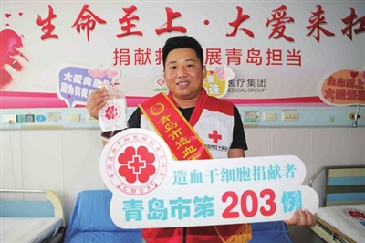 6月24日下午,青岛市第204例造血干细胞捐献者肖克勤来到青岛市中心医院,肖克勤将于28日进行捐献采集。