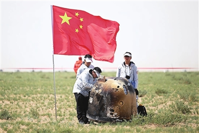 在降至距地面约10公里高度时,返回器打开降落伞,完成最后减速并保持姿态稳定,随后准确在预定区域平稳着陆。