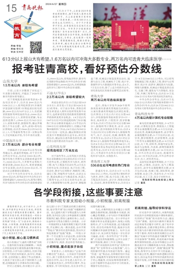 针对高中学习的特点,市教科院组织初高中名师根据初高中课标和教材,共同研讨“衔接”的内容和方法,建设“引桥”课程。组织初中教师开展高考动态和高考试题学习研究,基于初中学业质量标准,在教学理念和核心素养培育方面与高中教学同向衔接;组织初高中骨干教师,利用市教育局微信公众号推出“初高中学科衔接系列微课“和“高中学法指导”等课程,形成初高中衔接典型课例和经验;在各学科微信公众号推送高中学习策略和重点内容,例如推出“跟着名师学化学”、物理“微说课”等板块,指导学生在初中学习的基础上,培养独立思考、概括归纳和逻辑分析的能力,综合运用各学科知识或新知识在情境中发现、分析和解决实际问题的能力。观海新闻/青岛晚报/掌上青岛 记者 董真