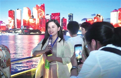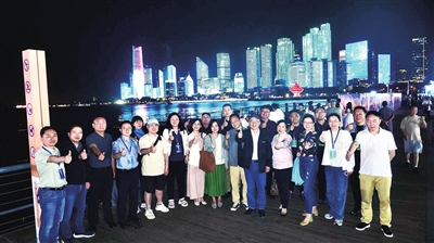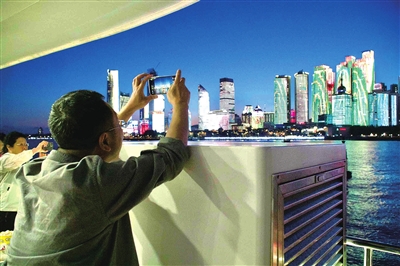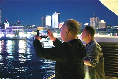 昨晚,参会嘉宾相聚在奥帆中心,体验“夜游浮山湾”,观赏灯光秀。浮山湾灯光秀已成为国内知名夜游网红打卡地。27日夜间的灯光秀,让嘉宾们零距离体验了青岛时尚活力的“打开”方式。