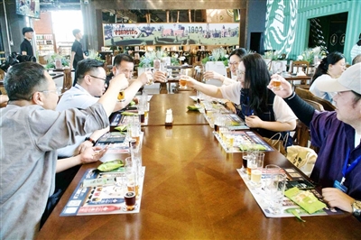 海风清爽,阳光温润,25℃的青岛,魅力尽显。2024青岛国际啤酒节开幕在即,由青岛晚报发起的2024青岛国际啤酒节直播邀约活动同期举办。西海岸新区的金沙滩啤酒城,站在象征着青岛啤酒节的干杯雕塑下,媒体嘉宾们举起青岛啤酒“鸿运当头”,向全国观众发出最深情的邀请:“青岛与世界干杯!”