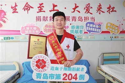 本报6月28日讯 “婚期可以调整,但救人更重要!”当准新郎肖克勤得知自己与血液病患者基因匹配成功时,果断伸出援助之手,为一位陌生患者送去生的希望。6月28日,肖克勤在青岛市中心医院成功捐献造血干细胞,成为市南区第19例、青岛市第204例非血缘关系造血干细胞捐献者。