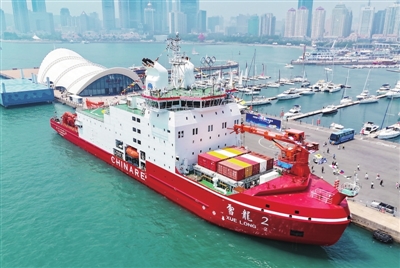 一同与“极地”号亮相青岛的还有我国第一艘自主建造的极地科考破冰船“雪龙2”号。