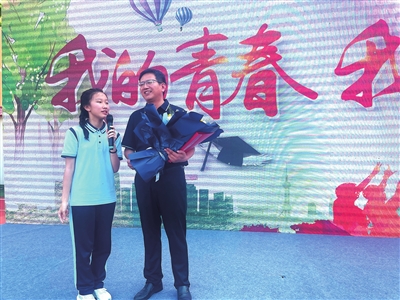殷殷嘱托眷眷情,深深一言拳拳心。临别之际,校长张丕喜代表学校向顺利完成学业并即将迈上人生新台阶的全体毕业生表示热烈祝贺,并为学子们送上三点嘱托:希望你们坚守人生底色,永远积极向上;希望你们坚定人生信念,永远拼搏进取;希望你们坚持学习,永远学无止境。“沿着这条路一直朝前走,在不远的地方就会有一个路口,你可以向左转,可以向右转,也可以朝前走,但是你不能停留。”张丕喜用《达摩流浪者》中的经典语句鼓励学生们不忘初心,砥砺前行,学校永远是大家的心灵港湾、不变的坚强后盾。 (记者 于娜)
