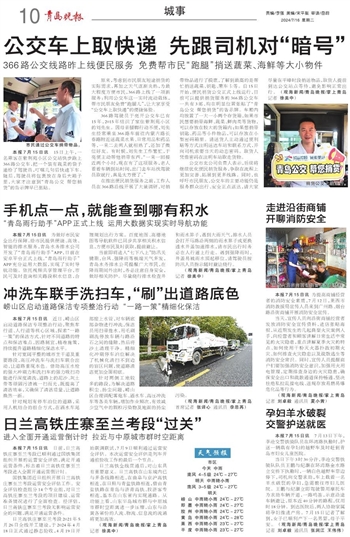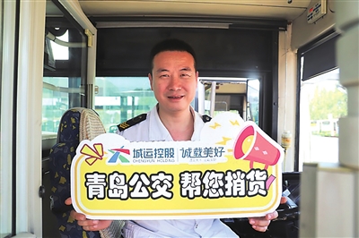 本报7月15日讯 15日上午,一名乘客在紫荆苑小区公交站快步跑上366路公交车,把一个装有蔬菜的袋子递给了驾驶员,叮嘱几句后快速下车。随后,驾驶员将包裹放在身后大箱子里,大家才注意到“青岛公交 帮您捎货”的告示牌早已张贴。