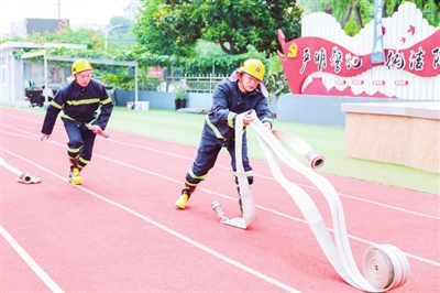 记者了解到,在这次保安职业技能竞赛中,保安员们进行了3个团体课目和往返跑、车辆指挥手势、消防技能1人1盘水带连接操作等3个个人科目的比赛,全面考验了保安员的体能和交通疏导、应急处置等技能。