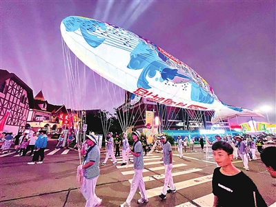 夜晚的金沙滩啤酒城最是绚丽多彩,市民游客抬头可见绚烂夺目的凤凰飞行器的壮丽表演。随时与来自海外的演奏艺术家们近距离互动,还能目睹青岛啤酒logo组成的超级鲸鱼造型从人群中穿行而过。同时,金沙滩啤酒城裸眼3D装置也迎来全新内容升级,重点打造“梦境奇遇”“啤酒之境”“机械纪元”“狂欢之舞”等主题的裸眼3D视觉内容,为游客带来前所未有的视觉震撼。