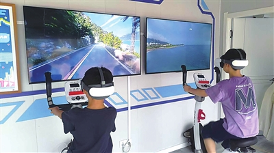 元宇宙运动文旅体验项目让游客们眼前一亮,竞相体验。“我们的项目主要具有绵长实景、多人互联、互动社交的特点。”工作人员告诉记者,项目内容根据实际场景拍摄,路线具有少则几公里、多则上千公里的精选线路实景,高质量的视频画质能使用户有身临其境的感觉;三维画面的用户虚拟人物在系统中的位置实时同步,可以实现几个好友一起你追我赶的激烈场景,体现了体育竞技精神;骑行过程中,用户之间可以实时互动,实现社交满足,还可以分享沿途的景色到朋友圈。