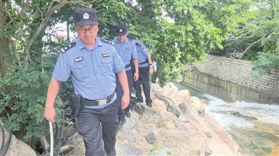7月25日下午1时许,崂山东麓的海边有些闷热,记者跟随青岛市公安局海岸警察支队返岭派出所民警来到雕龙嘴桥下,随后下车步巡。